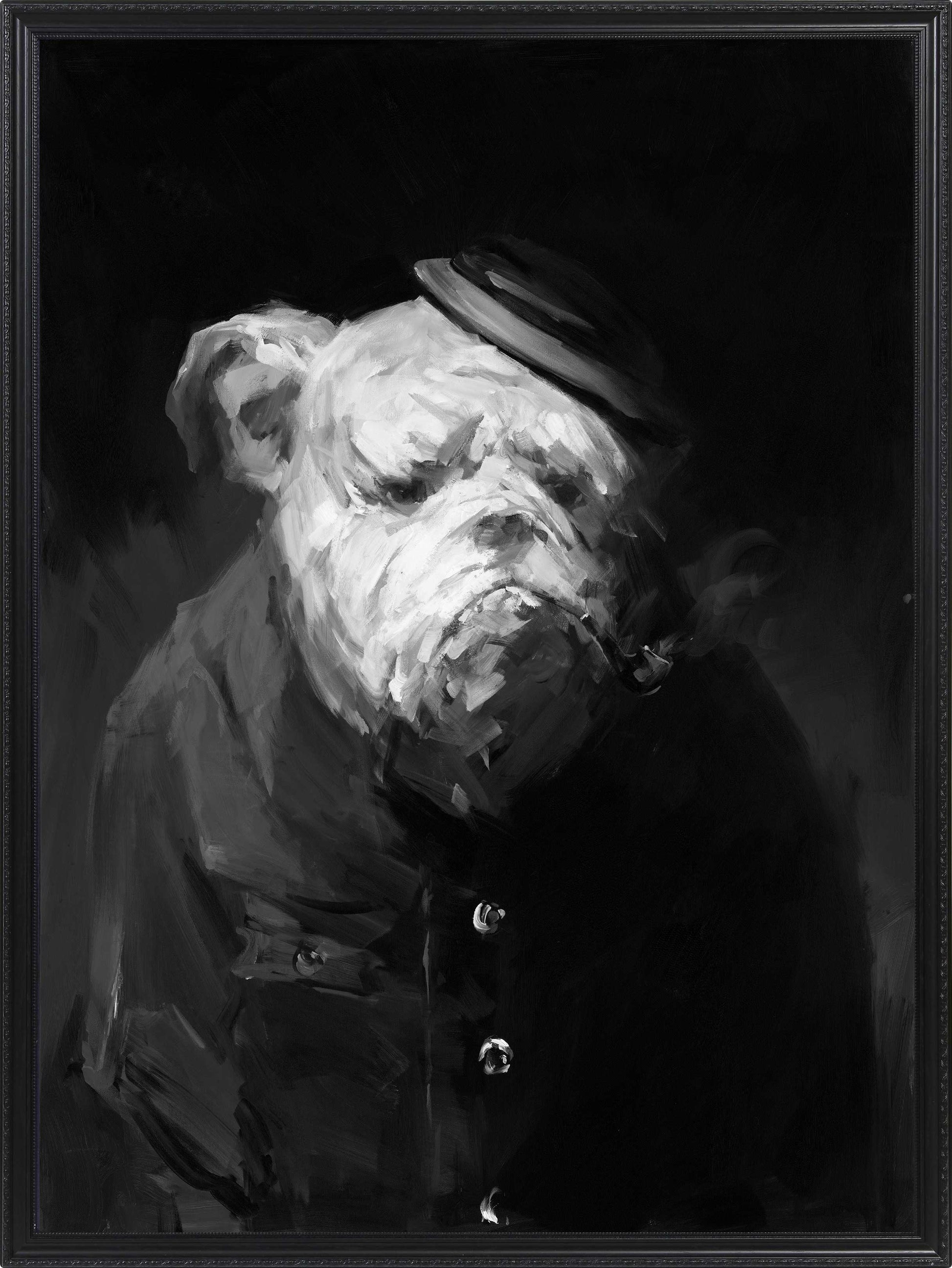 Classic charm with a playful twist. The Statesman features a distinguished bulldog dressed in a hat and tailored jacket, bringing personality and character to any space. Its portrait-style scale makes it ideal for hallways, studies, living rooms, offices, reading nooks, or anywhere you want to add humour and sophistication in equal measure.